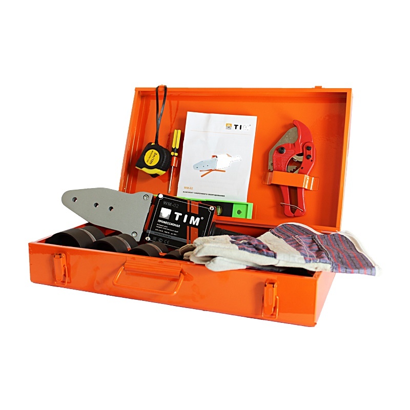 Полная комплектация - труборез, перчатки, уровень, рулетка, отвертка и ключ.