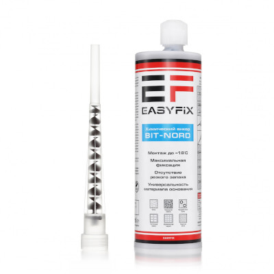 Химический анкер EASYFIX BIT-NORD разработан для осуществления анкерных креплений в экстремальных условиях северных широт и низких температур (монтаж до –20°С) в тяжелом и легком бетоне, железобетоне, природном камне, различных видах кирпича (керамического и силикатного) и в пустотелых материалах. Картриджи могут храниться и транспортироваться при температуре ниже –20°С, при размораживании сохраняют свои свойства, что является исключительным преимуществом при складировании и производстве работ в условиях строительной площадки в зимний период.